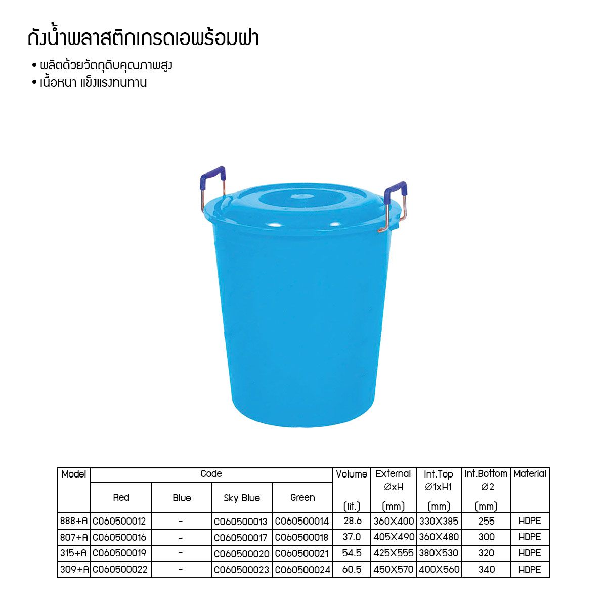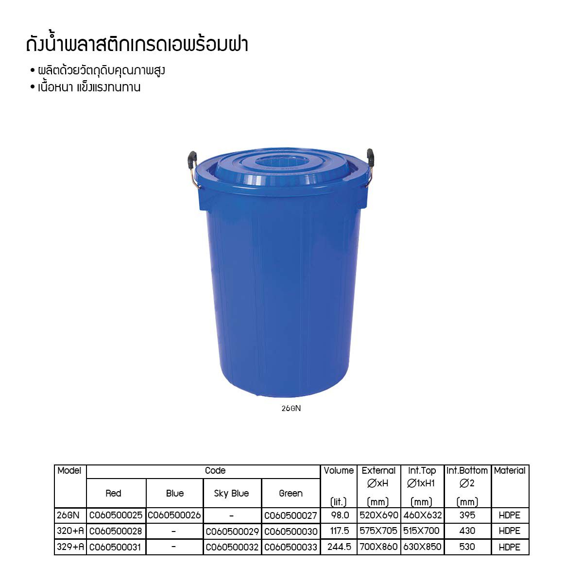 ถังน้ำพลาสติก ผลิตด้วยวัตถุดิบคุณภาพสูง เนื้อหนา แข็งแรงทนทาน พร้อมฝาปิด